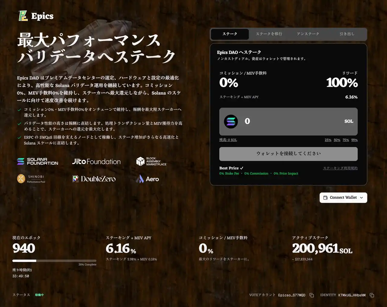 Epics DAO バリデータは、性能追求と還元性の両立を重視したポリシーのもと運営されています。 |