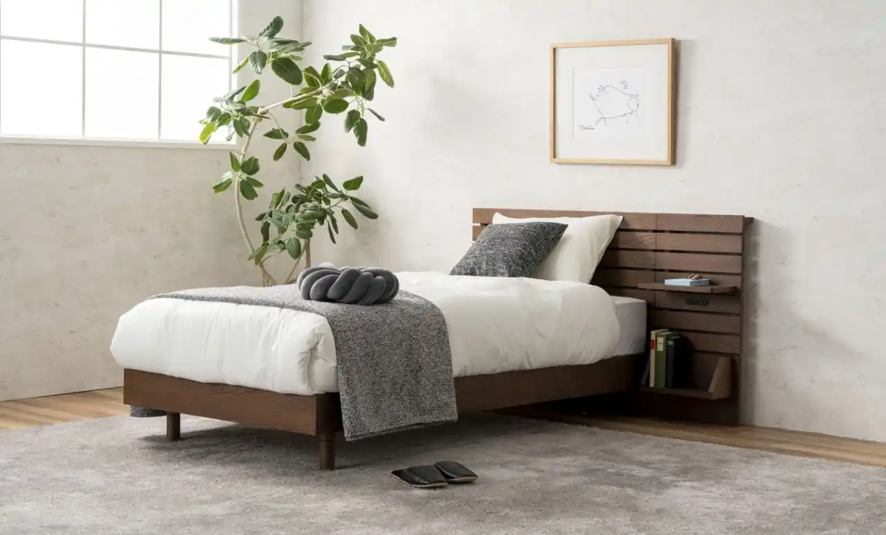 木のあたたかみを感じる、Bragiのベッドフレーム。 シンプルなデザインが寝室にやさしくなじむ。 シングル、セミダブル、ダブルの3サイズ展開で、暮らしに合わせて選べる設計。 |