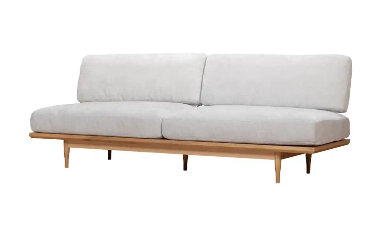 アームのない、すっきりとしたフォルムなので、視線を遮らず空間にゆとりをつくる。 背クッションを外せば、奥行きたっぷりの広々とした座面に。 あぐらをかいたり、横になったり。思い思いのくつろぎが広がるソファ。 |