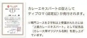 | 講座修了後の認定試験合格でカレー大學の認定資格「カレー伝導師」を授与 | |||||||||