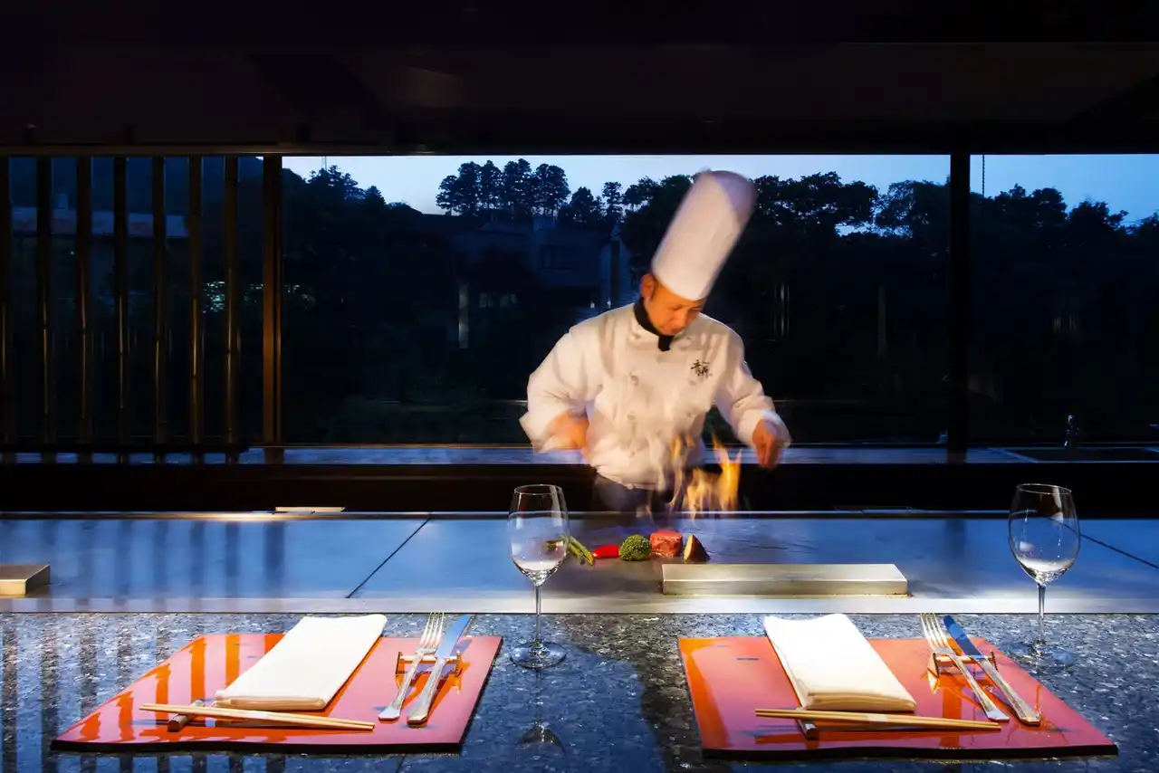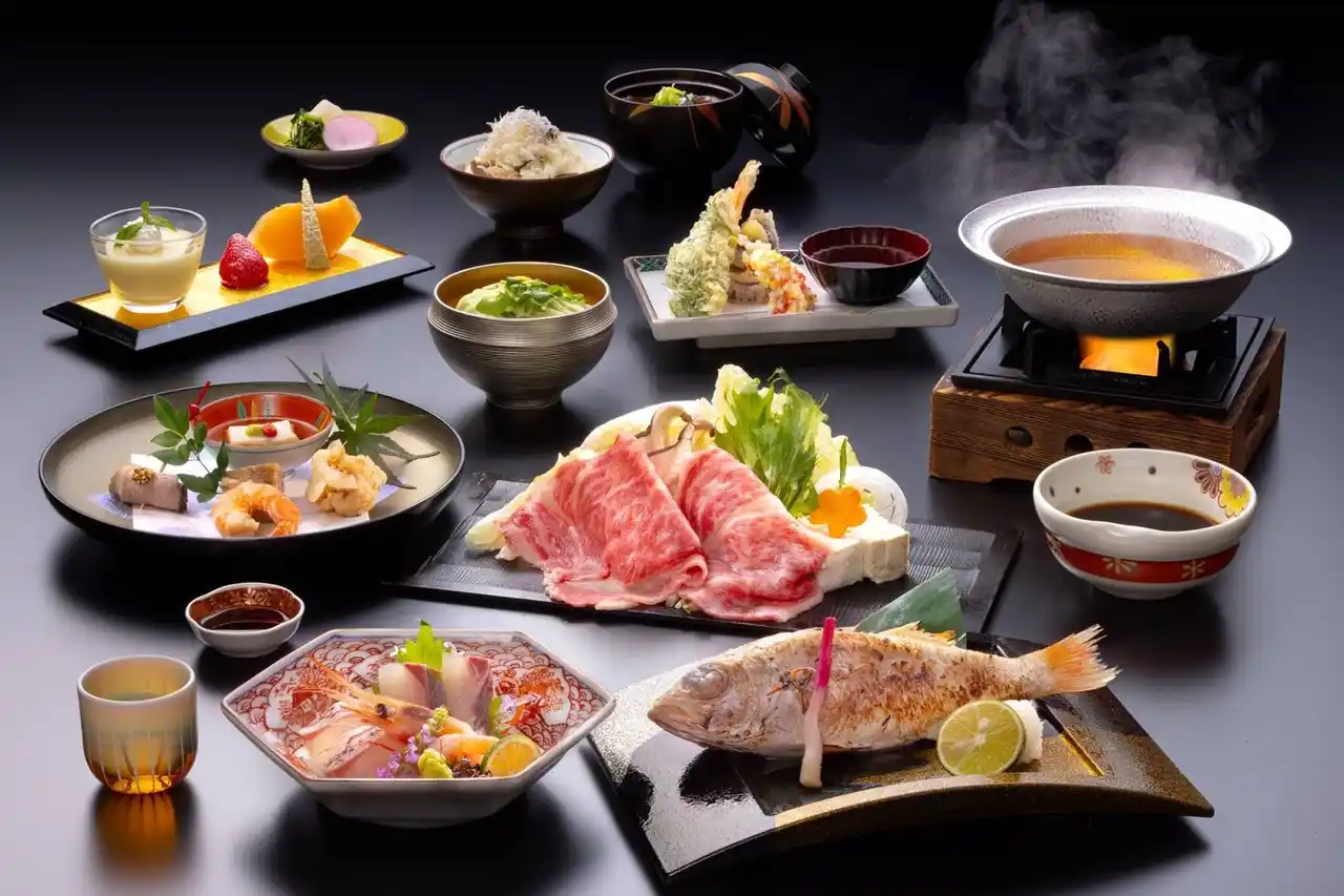 | のどぐろ、甘海老、ズワイガニなど海の幸、能登牛、加賀野菜は、加賀会席と本格的な鉄板焼レストランでご賞味いただけます。 | ||||||||||||||
