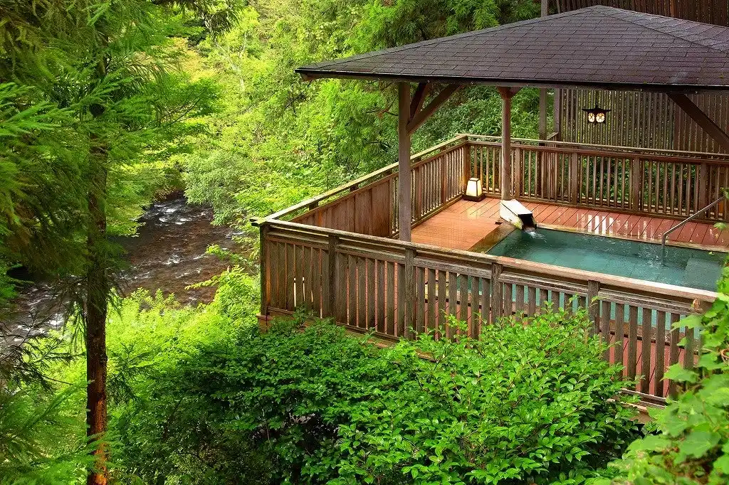 | 北陸随一の渓谷美“鶴仙渓”と芭蕉が愛した山中温泉を見晴らすルーフトップデッキで朝ヨガや星空観察、陶板浴、加賀みずひき作り、吉祥一服、加賀染め浴衣で街歩きをお愉しみください。 | ||||||||||||||