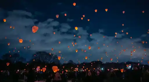 夜空に浮かぶ幻想的なランタン |