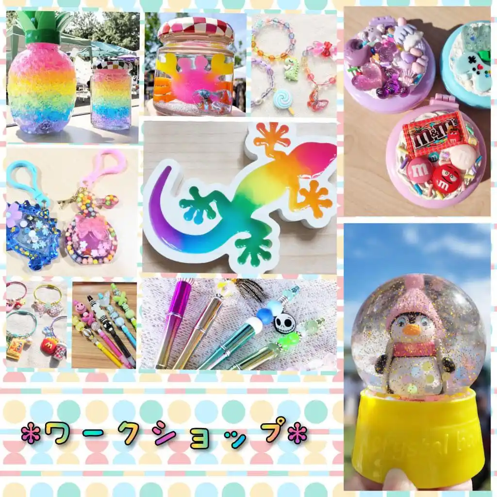 いろんなオリジナルグッズ作りが楽しめるワークショップが登場し、会場は“かわいい”があふれる創作タイムに包まれます。スノードームやジェルボトル、キーホルダー、カスタムペンなどの定番アイテムに加え、3Dブレスレットやホイップデコなど、ときめくメニューがいっぱい。好きな色やパーツを選びながら、自分だけの“世界にひとつのかわいいアイテム”を作れるのが魅力で、完成した作品は思わず写真に撮りたくなる仕上がりになります。 |