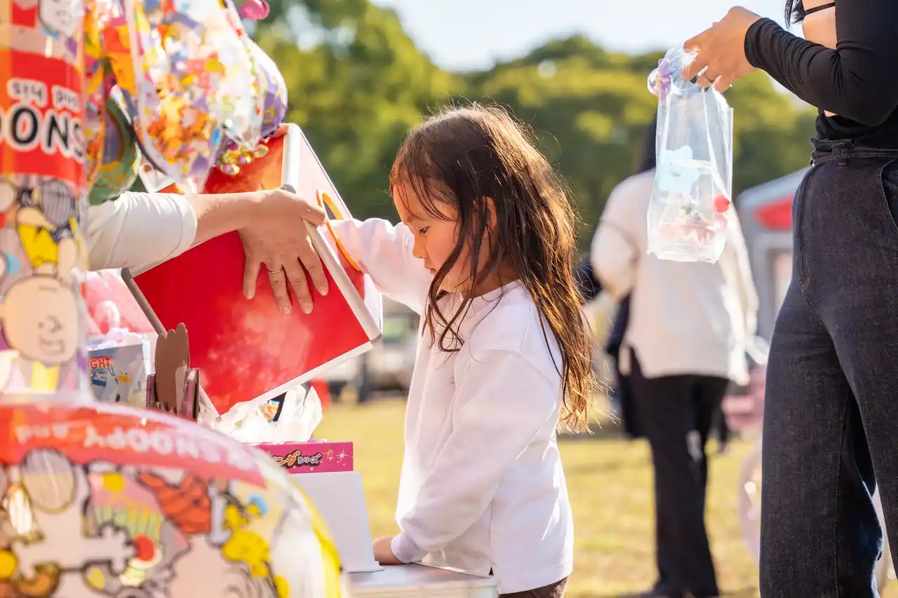 スーパーボールすくい、くじ引きなど、親子で楽しめる縁日でお祭り気分を味わえます。キラキラ光るスーパーボールが水にぷかぷか浮かんでいるだけで、まるで宝石の池みたい!子どもも大人も、ついつい夢中になっちゃいます。「何が当たるか…。」その緊張感と期待感が魅力のくじ引きで豪華景品をGETしてください! |