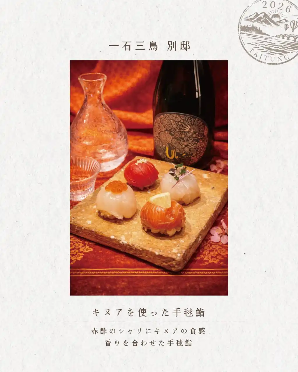 その想いに台東県政府の協力が加わり、このたび一石三鳥グループ各店でのフェアとして実現。 単なる食材フェアではなく、土地と人とのつながりから生まれた食文化交流プロジェクトとして、日本の料理人たちが台東の魅力をそれぞれのスタイルで表現します。 |
