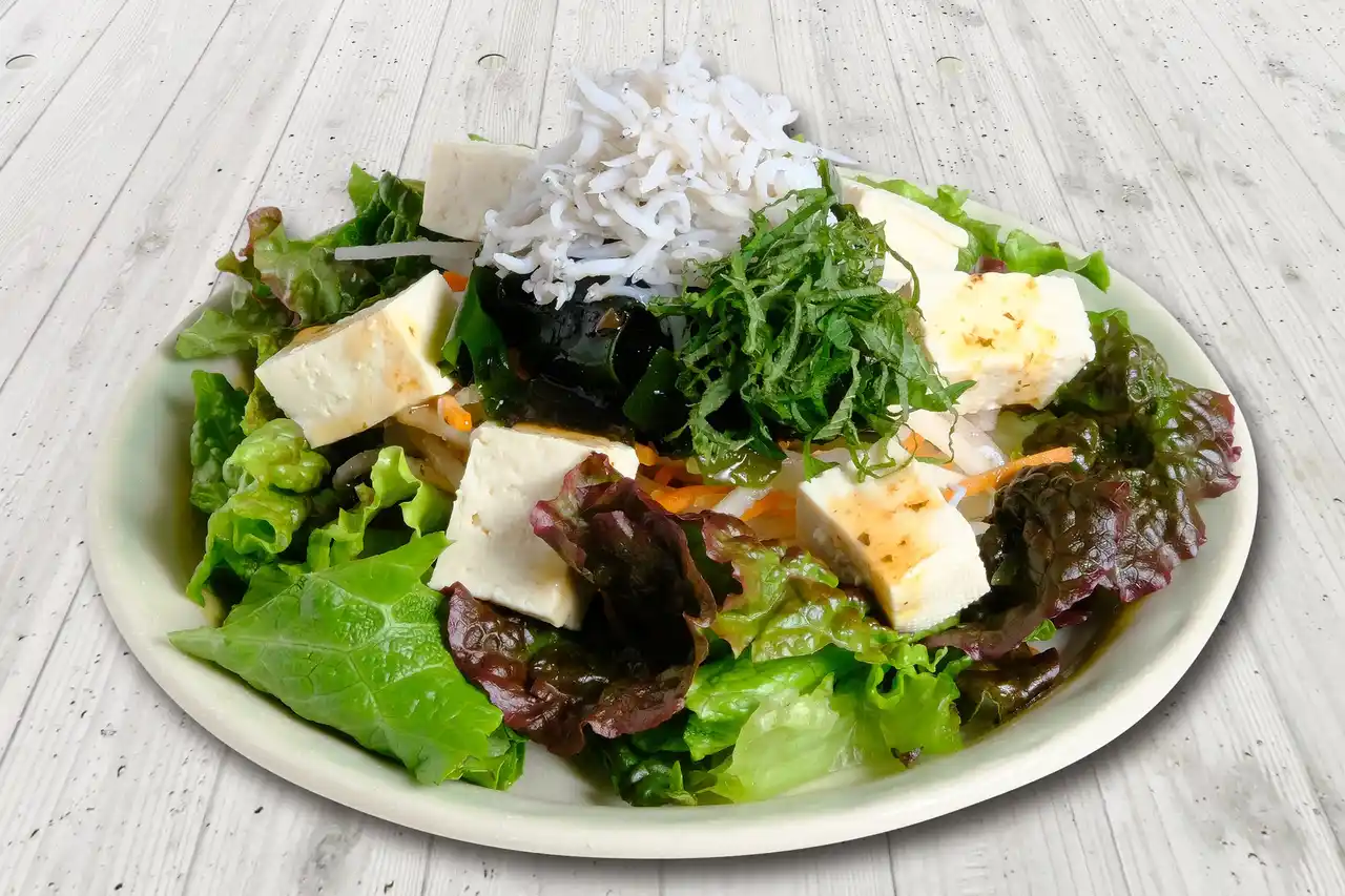 | ●しらすと梅の春サラダ 590円(税込649円) | |||