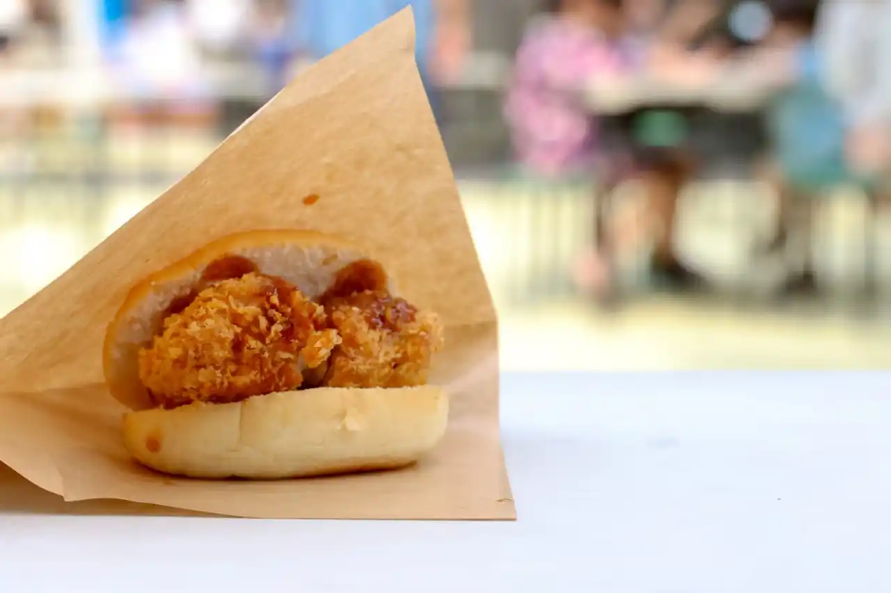 上野発祥で現代ではメジャーな料理の一つとなった「とんかつ」。今回は学生が、上野でのお祭りで上野の地発祥の料理を味わってほしいという思いから商品開発を行いました。お祭りでは、パンのバターの風味ととんかつの塩味がどちらも感じられるよう、とんかつ単体ではなく「とんかつサンド」として販売しました。 |