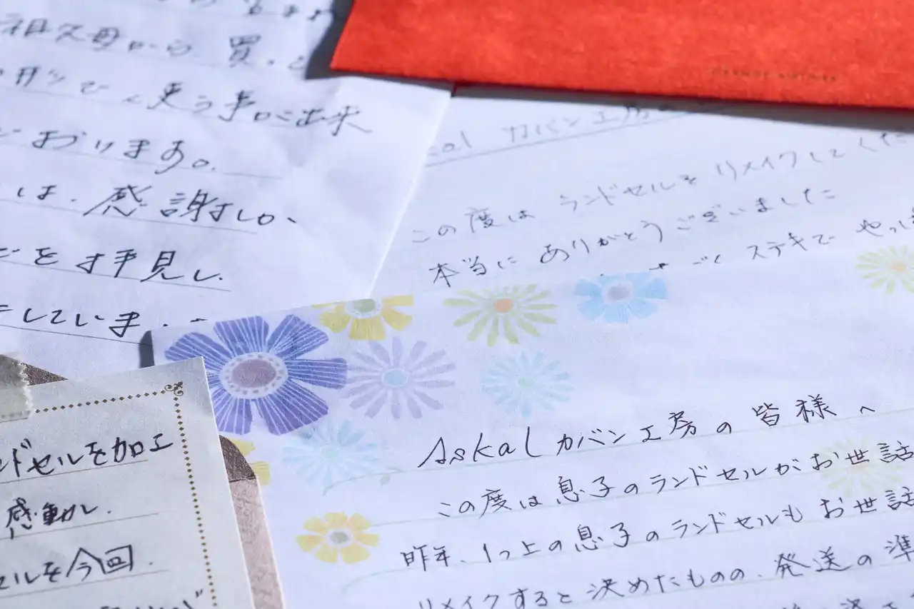 毎年、数百通の手紙がランドセルと一緒に届きます。義務ではありません。それでも手紙が来るのは、ランドセルだけでは伝えきれないものがあるから--そう思っています。 |