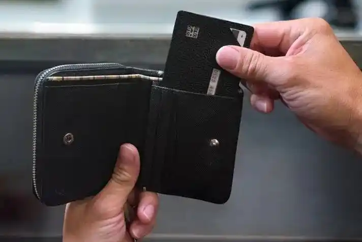 厚さわずか3mm・約18gという薄型軽量設計。サイズは横6.5cm×縦9.5cmで、一般的なカードサイズにぴたりと合うコンパクトさ。長財布のカードポケットに差し込んでも膨らまず、ミニ財布やジャケットの胸ポケットにもスッと収まります。 |