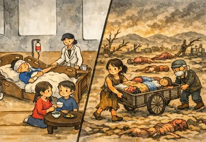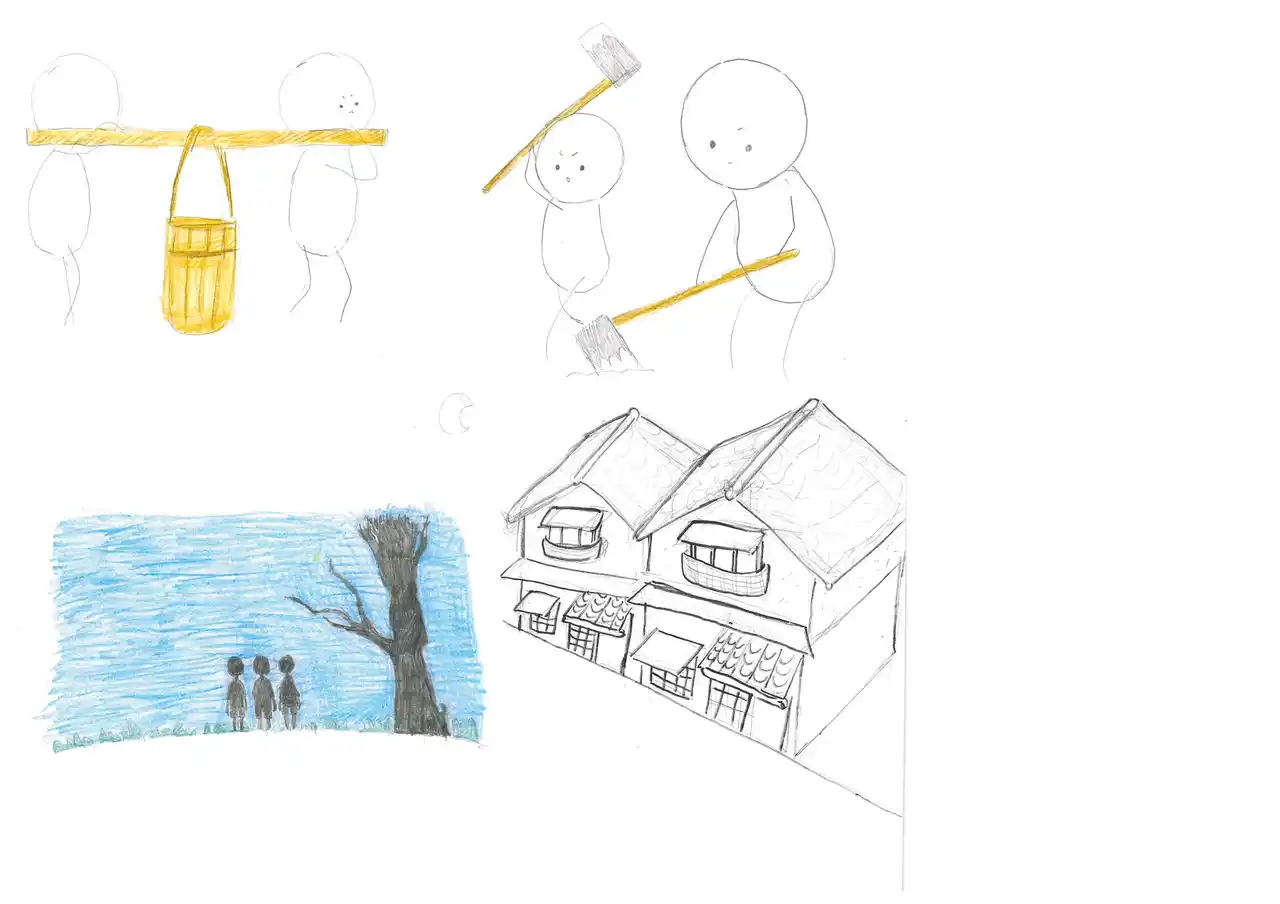 絵本の文章は、なかよし学園が作成し、長崎原爆資料館に事実誤認がないか確認を取りながら整えました。両校の生徒たちは、それぞれの場面に合わせてイラストを制作。なかよし学園は、それらの作品をAIも活用しながらテイストや構図を丁寧に統合し、一冊の絵本として完成させました。 |