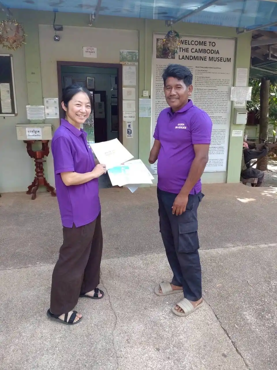 カンボジアの地雷博物館に寄贈されたクメール語版「はじめてのナガサキ」 |