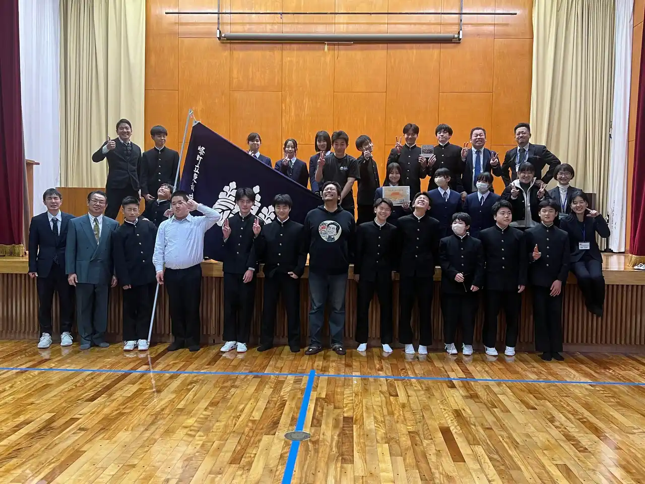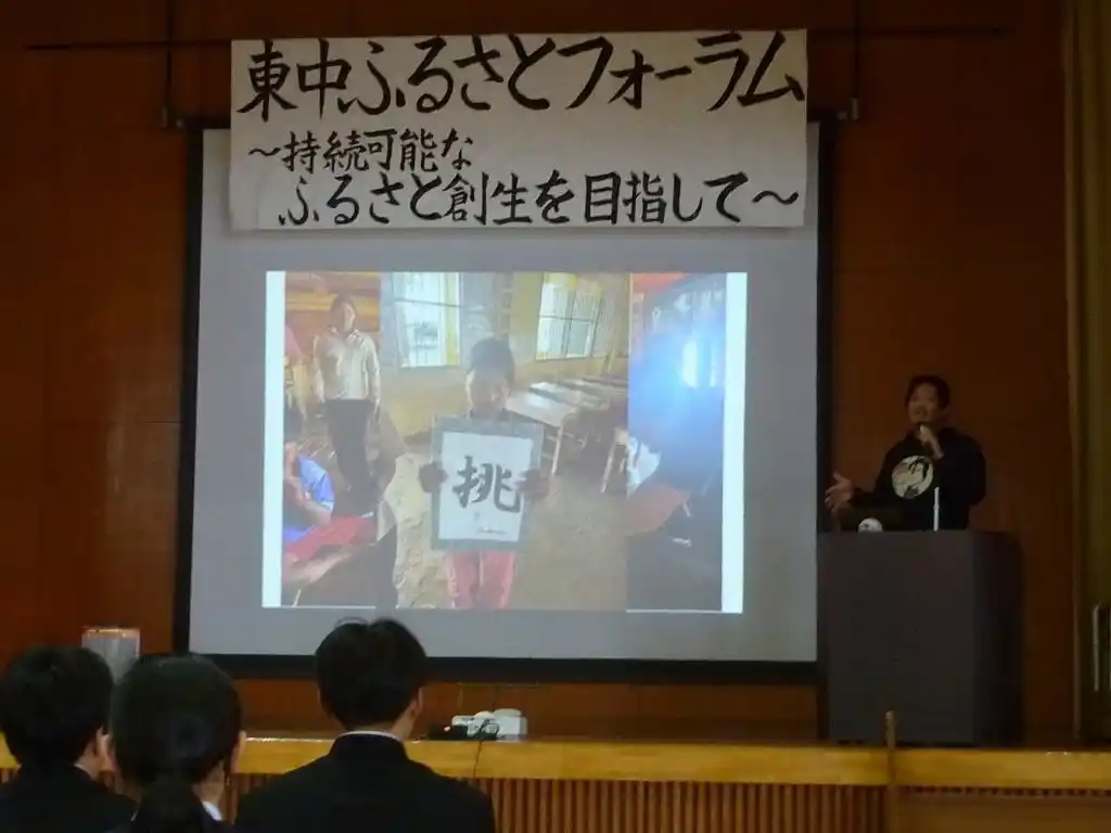 東部中学校では、年度の学習成果を発表する学習発表会の中で、なかよし学園が生徒たちの世界での活躍を紹介する講演を実施しました。講演後には地域の方々も集う「東中ふるさとフォーラム」が開催され、生徒たちの学びを学校内にとどめず、地域社会と共有する機会となりました。 |