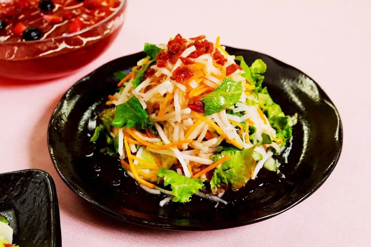 | ●特製梅ドレッシングの彩り大根サラダ | |||||||||