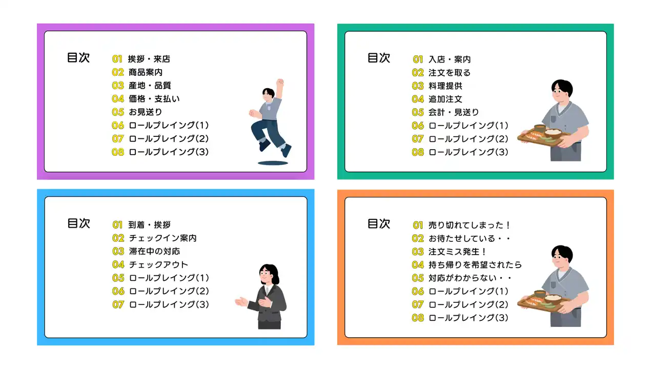 台湾華語(台湾の中国語)に特化したオンラインスクール「台湾散歩( https://taiwan-sanpo.com/ )」を運営する株式会社スモールブリッジ(本社:東京都渋谷区、代表取締役:橋爪小太郎)は、2026年3月14日(金)サービス業に従事する方向けのオリジナル教材「接客台湾華語シリーズ」全4種の提供を開始いたしました。 |