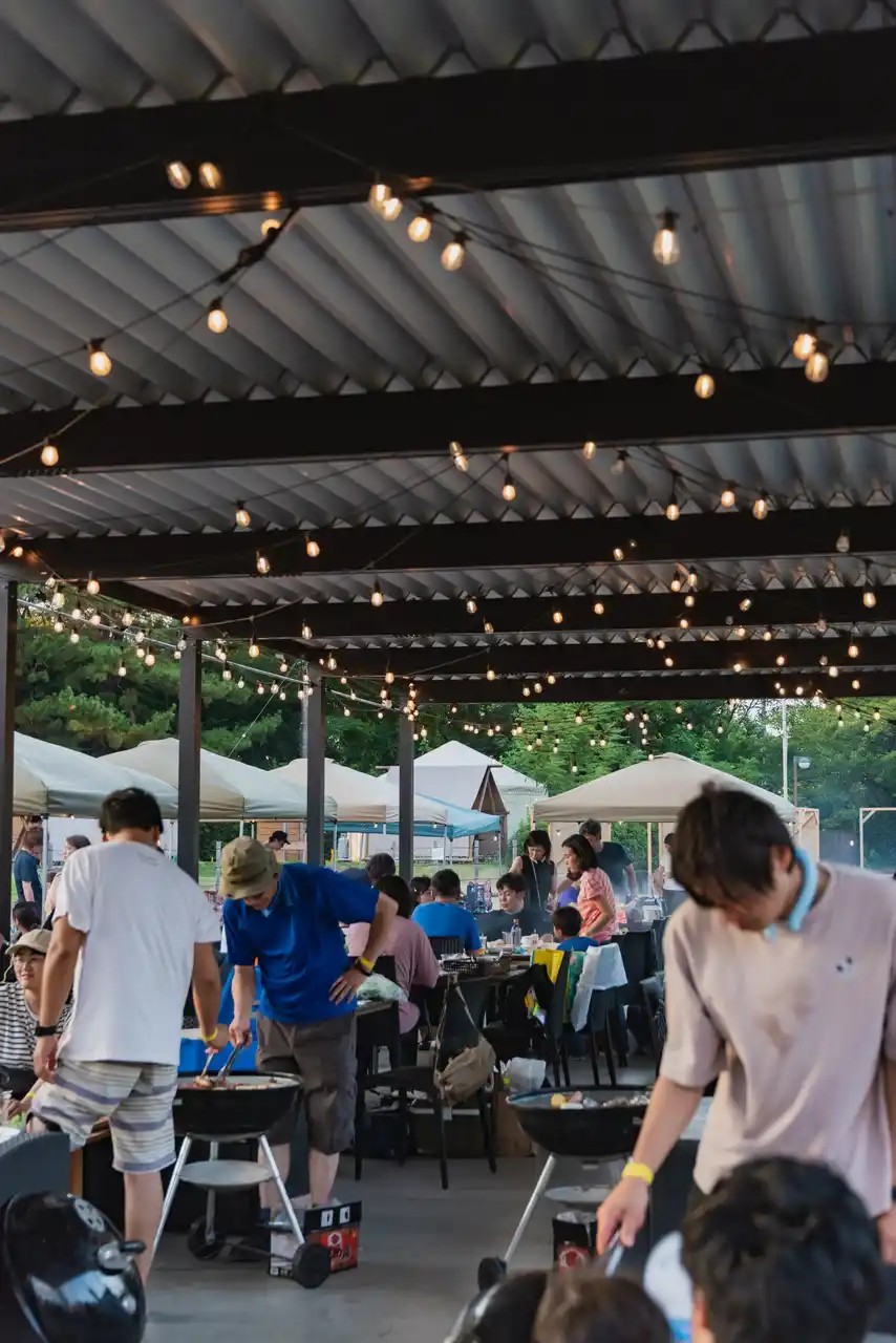 たとえば、尾西グリーンプラザの会議室で研修や打ち合わせを行ったあと、ウッドデザインパークいちのみや-紡-へ移動してBBQを囲みながら懇親の時間を過ごす、といった流れが描けます。日帰りBBQは、グリルや炭、皿、トング、ソース類まで一式が用意され、着火もスタッフが行うため、幹事側で大がかりな準備をする必要がありません。全席屋根付きのため、雨天時にも予定を崩しにくい点も、法人利用における安心材料のひとつです。 |