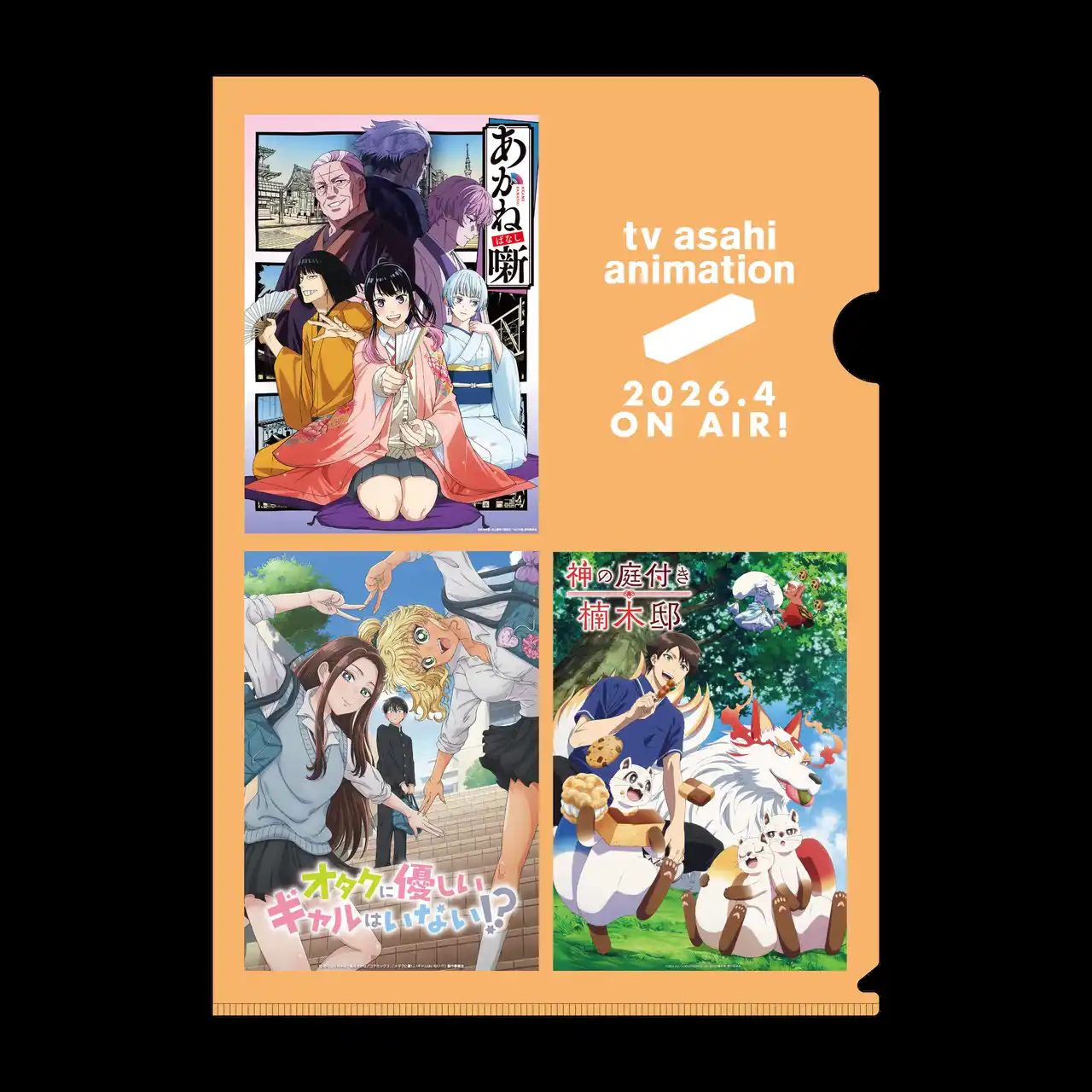 | さらにブース来場者には、26年4月・7月クール放送の新作タイトルが詰まった「特製クリアファイル」も数量限定で無料配布が決定!テレビ朝日アニメの未来が手元に残る、ファン必携のアイテムですのでこちらも確実にGETしたい方はぜひtv asahi animation公式X(https://x.com/tv_asahi_anime5)をチェックしてブースまでお越しください! | |||||||||