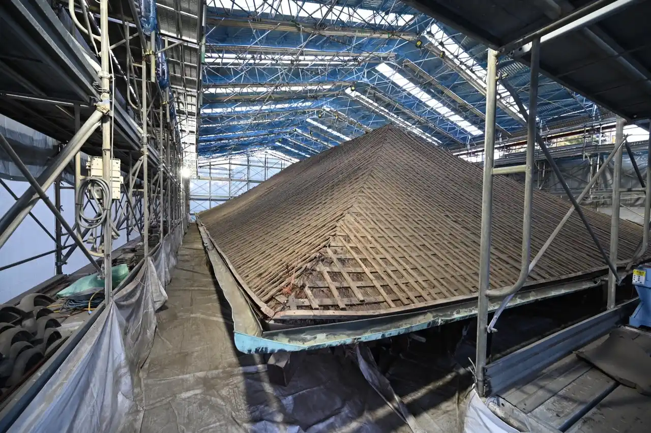 さらに通常は非公開となっている「伝法院庭園」では、まさに“伝統と未来”を感じる光景が広がる。現在修復作業が進む伝法院では、8,000枚の瓦を一つ一つ叩いて目には見えない破損を検査。微妙な音の違いを聞き分ける職人技に、菊五郎さんも挑戦する。 |