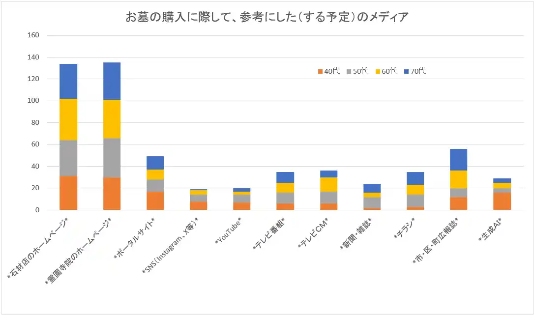 このアンケート調査から情報を発信する事業者は、「公式ホームページ強化が最重要施策」、「樹木葬・永代供養墓の情報発信強化」、「事前相談・終活提案型の啓発」、「40代向けに生成AIデジタル連携施策検討」の施策が挙げられる。 |