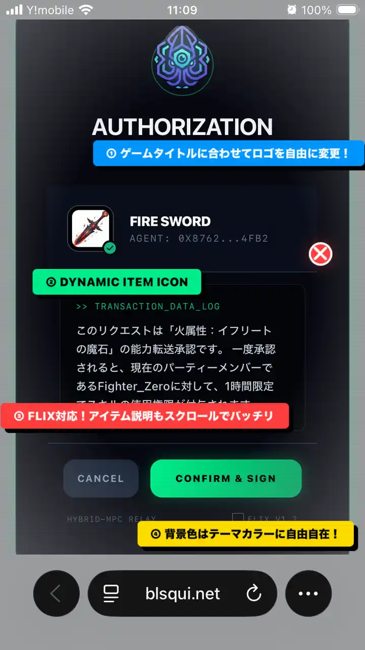 | ・ゲーマー向けのスムーズな体験: 非永続的RAMキャッシュ技術により、検証後60分間はワンクリックでのシームレスな署名が可能。 | |||