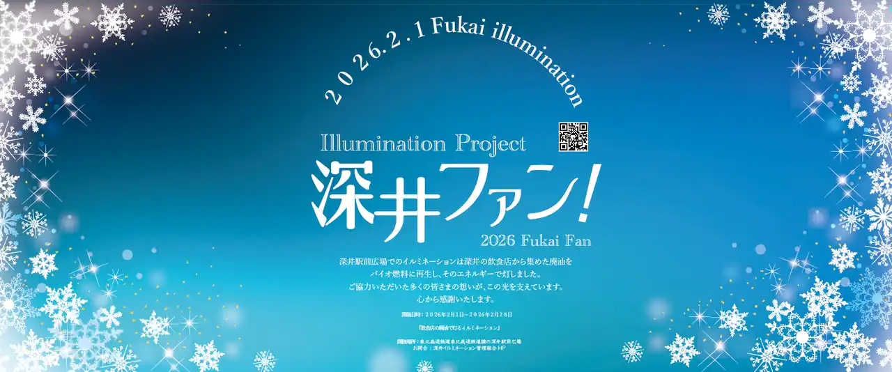 その取り組みの一つとして、「飲食店の廃油が街の光になる」をテーマに、2026年2月1日から2月28日まで堺市中区・深井駅前広場にて **「2026 深井イルミネーション」**を開催しました。 |