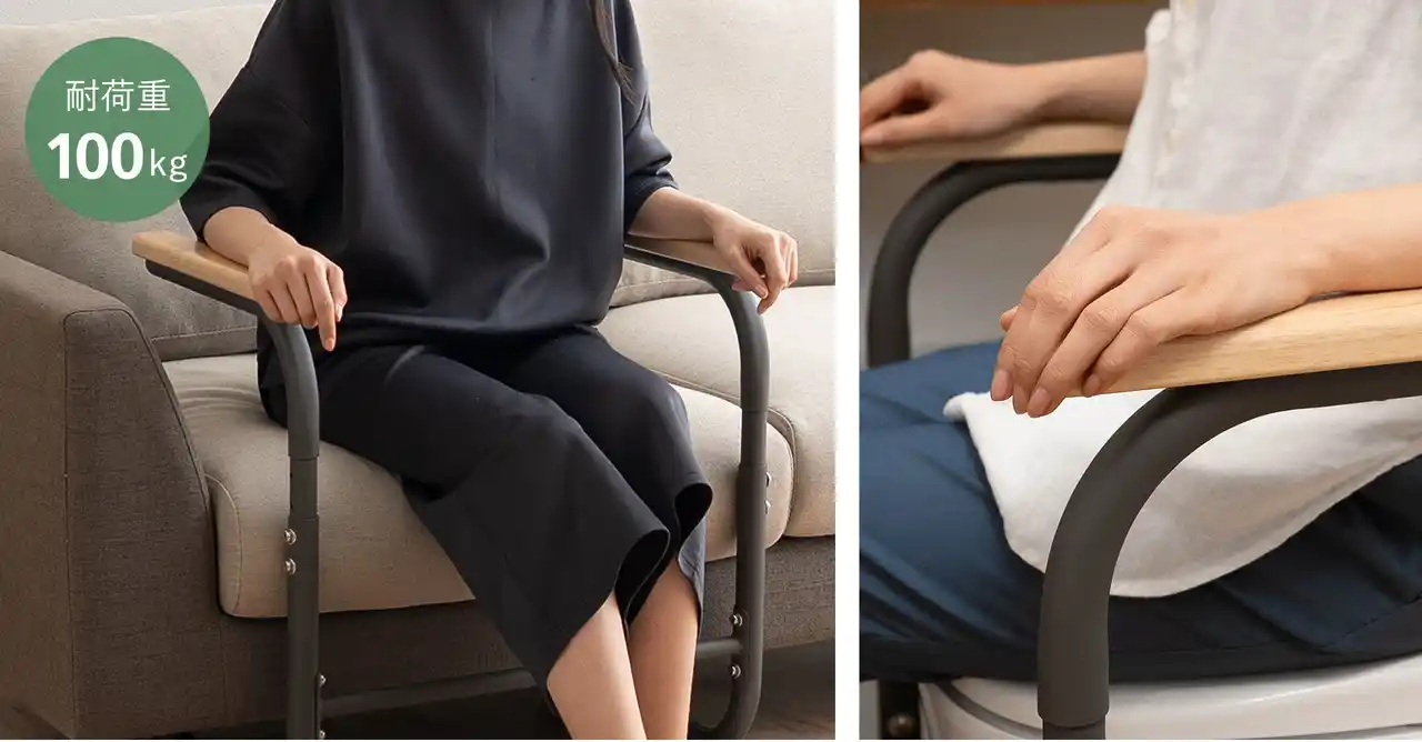 さらに耐荷重100kgの安心構造。体重をしっかり支えることで、立ち上がり時の不安をやわらげます。 |