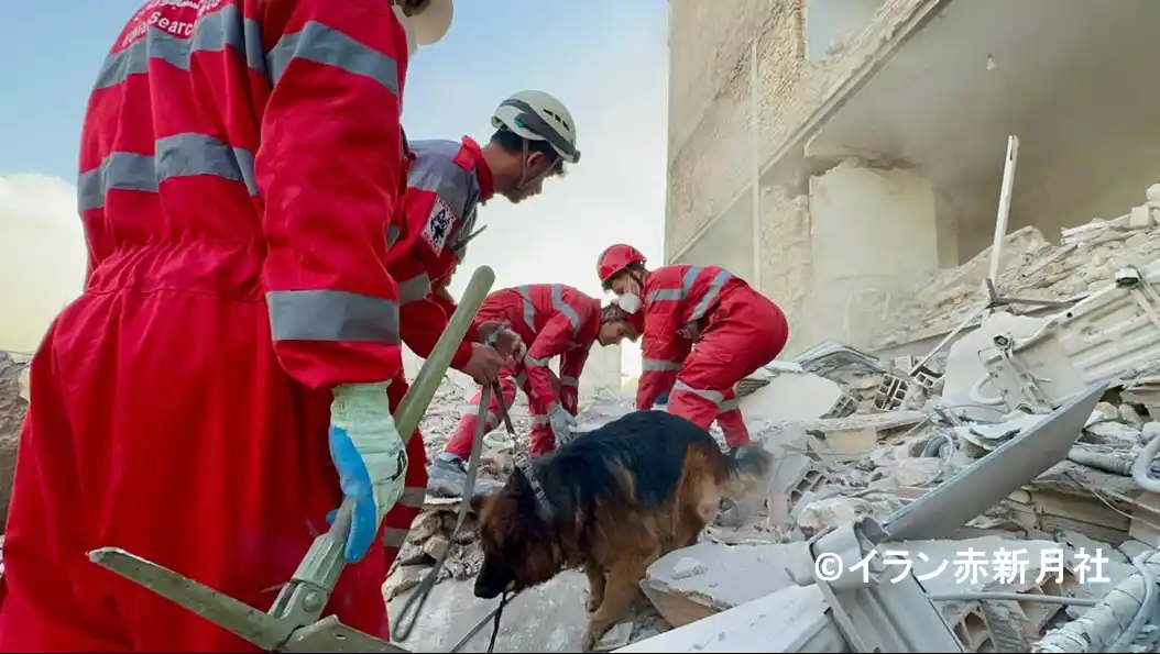 イランの首都・テヘランでの捜索・救助活動を行う現地赤新月社のスタッフ |