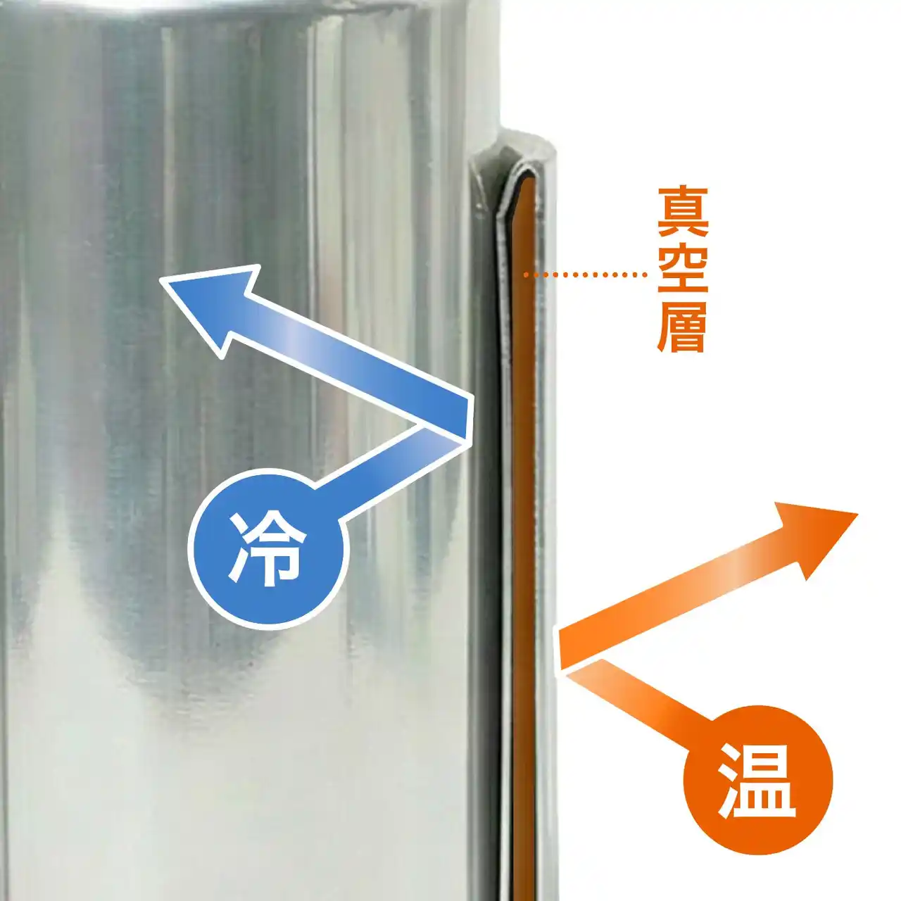 真空構造が温度差を抑え、表面に水滴が付きにくい。 |