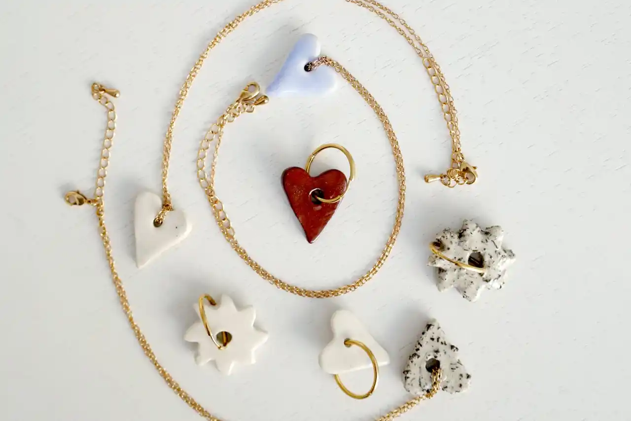 ジュエリーは全てが手作業で作られ、粘土やガラスなどの素材を使った不規則なフォルム、鮮やかな色彩など、どれも身に着けられるアートピースのよう。伝統的な文化に根ざしながら、繊細でありながらも遊び心にあふれた女性らしさとユニークさを兼ね備えている。 |
