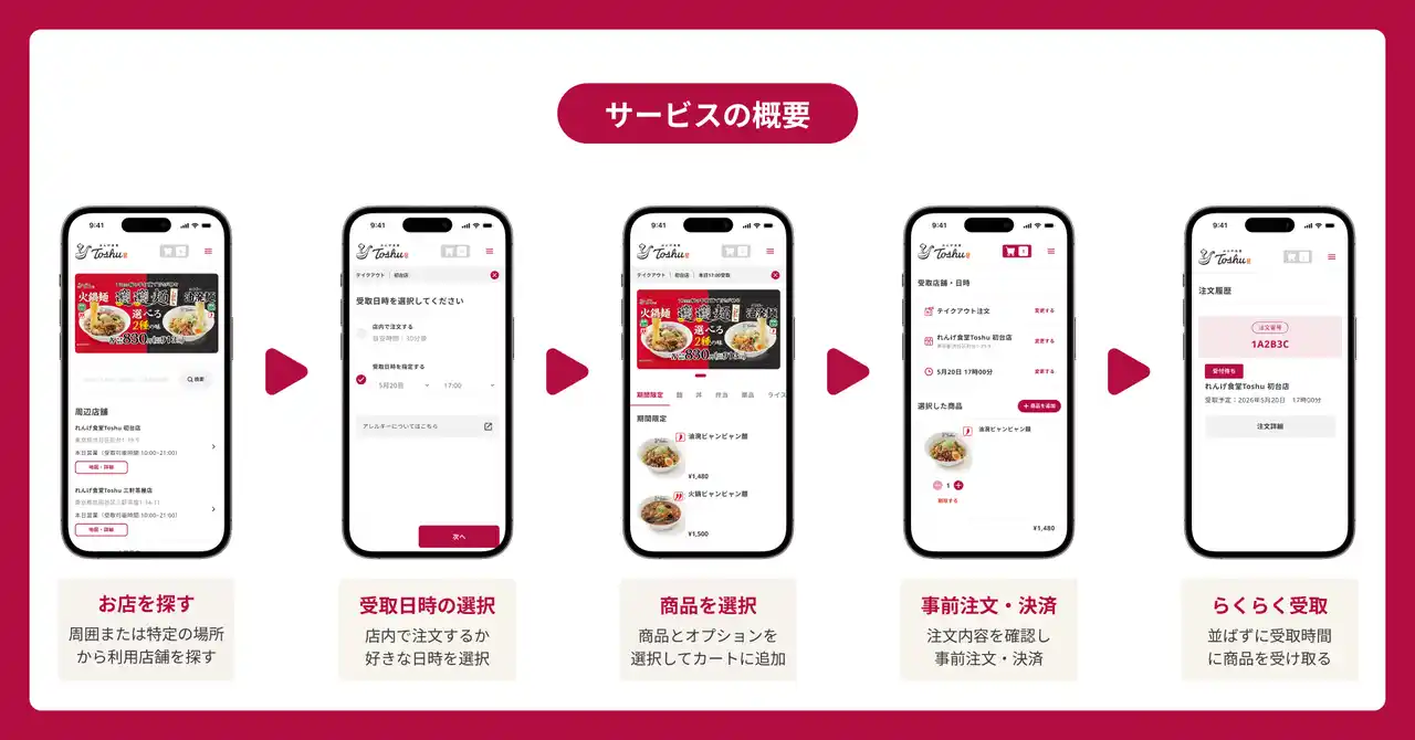 事前に注文・決済が完了するため、混雑時でもスムーズに商品をお受け取りいただけます。 |