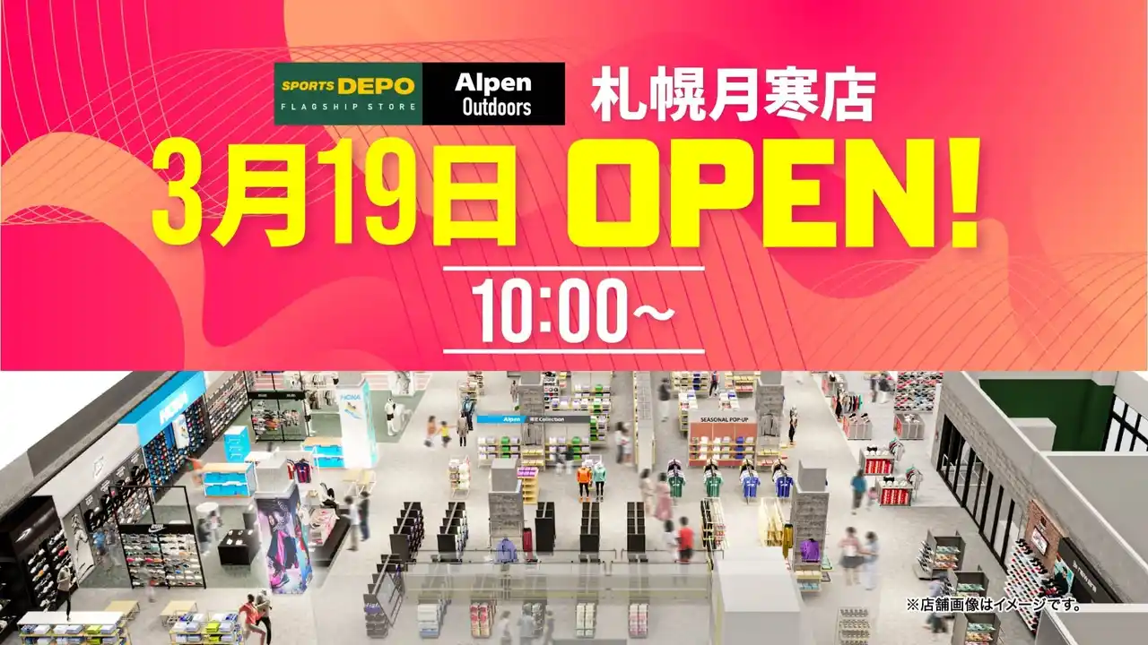 札幌月寒に北海道初上陸のスポーツデポフラッグシップストアと併設のアルペンアウトドアーズが3月19日(木)から道内最大級の品揃えでグランドオープンセール開催