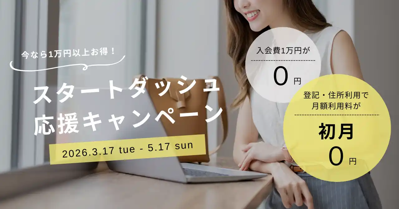 4月からの新年度に向けて一歩踏み出す起業家やリモートワーカーを応援。1名個室+登記・メールボックスのオプション契約で、入会金と初月利用料を合わせて最大49,800円もおトクにご利用いただけます。開業をご検討中の方、この機会にぜひお申し込みください。 |
