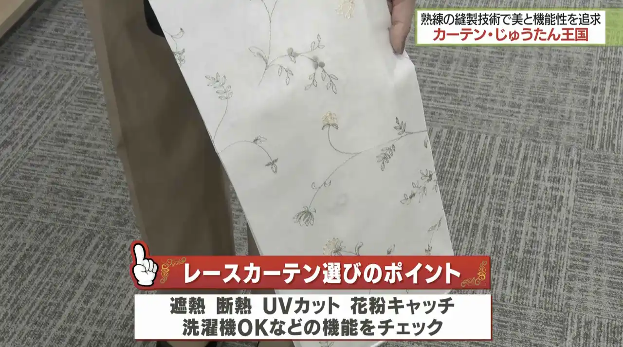 カーテン・じゅうたんの専門チェーンストアを全国80店舗展開する株式会社カーテン・じゅうたん王国(本社:東京都中央区、代表取締役社長:今井満春)の南浦和カーテンショールームが2026年3月11日放送のテレビ埼玉の情報番組「マチコミ」にて紹介されました。 |