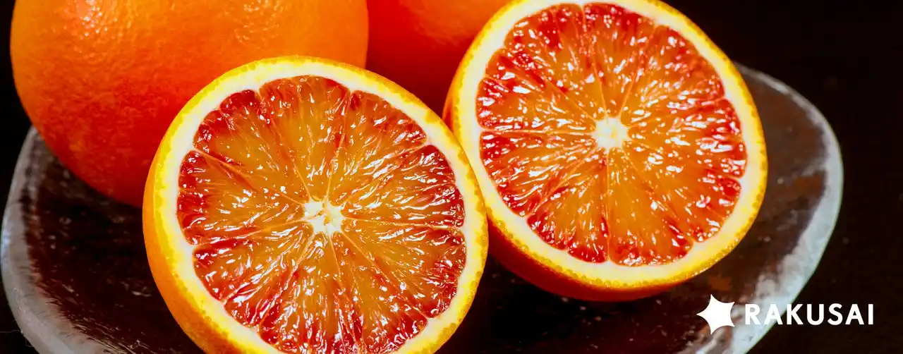 イタリア原産の赤いオレンジ『ブラッドオレンジ・タロッコ種』。国産は非常に希少で、愛媛県宇和島市は生産量全国一を誇る産地です。鮮やかな赤い果肉と、濃厚でコクのある味わいが特徴で、そのまま味わうのに適した“生食向け”の品種です。アントシアニンや葉酸などの栄養素を含むことでも知られています。 |