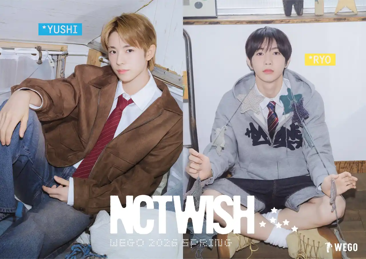 2026年3月19日(木)から、WEGO全店舗にて「NCT WISH」のビジュアル掲出を開始いたします。一部店舗ではウィンドウ掲出&大型パネル設置もありますので、ぜひお近くの店舗にお立ち寄りください。 |