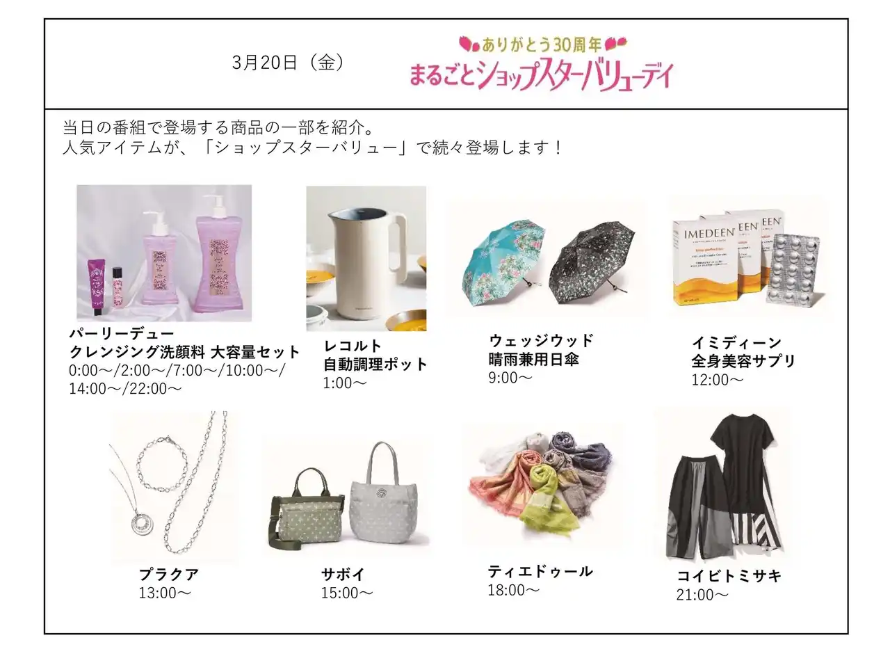 3月20日(金)は、 30周年イヤーを記念し、おすすめ商品を特別価格で24時間紹介する |