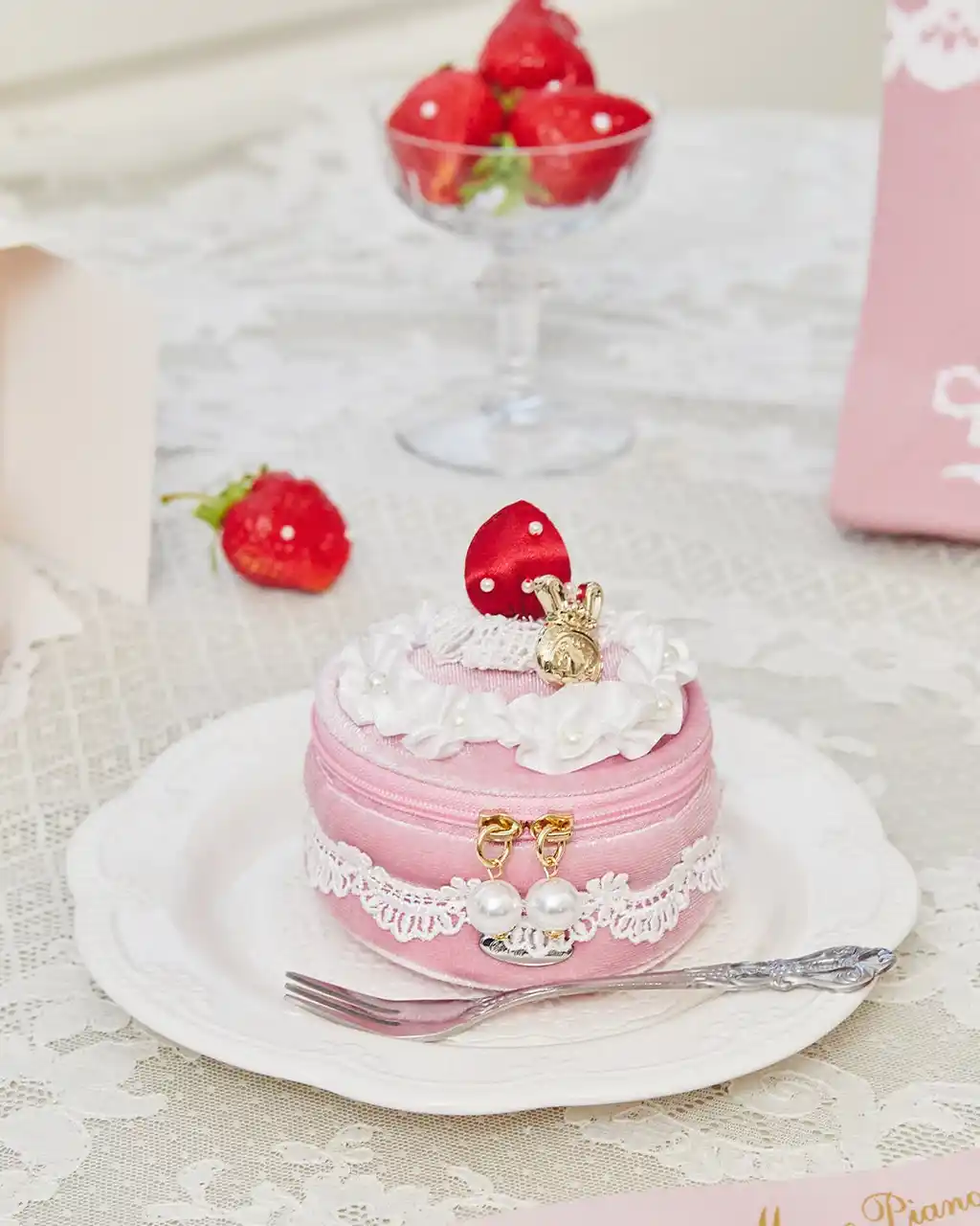 きらめくピンクカラーがとびきり可愛い、ケーキ型アクセサリーケース。 サテンリボンやレースのクリームデコレーション、ぷっくりとしたいちごにベリエちゃんの立体プレートを添えた、まるで本物のケーキのような特別デザインです。 |
