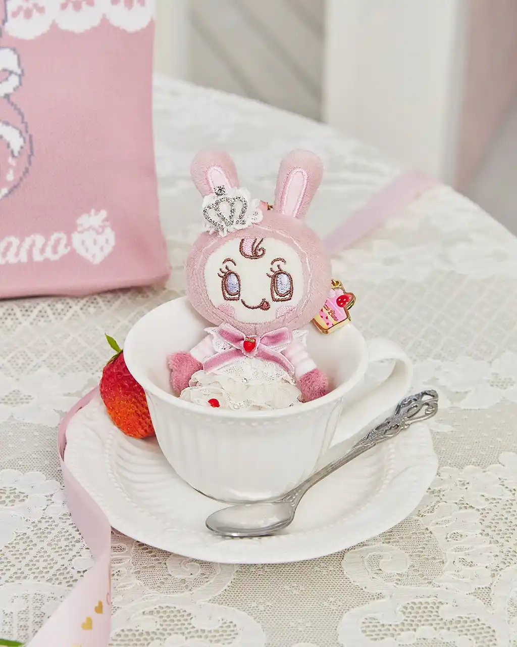 クリームみたいなフリルドレスに身を包んだ、ベリエちゃんのぬいぐるみチャーム。 きらきら輝くティアラをのせて、お誕生日をお祝いする特別なスタイルです。ドレスの胸元とシューズにはいちごをトッピング。パールチェーンには小さなケーキチャームが付いています。 |