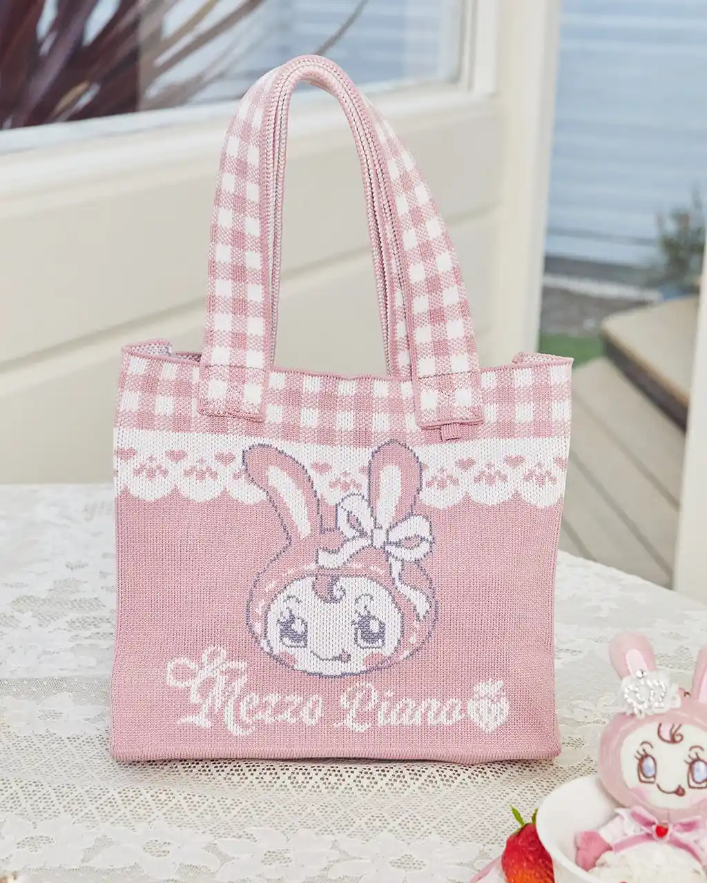 今回のコレクション限定デザインのベリエちゃんをあしらったジャカードニットバッグ。 レースモチーフとやさしいピンクカラーが、ガーリーで華やかな雰囲気を演出します。 |