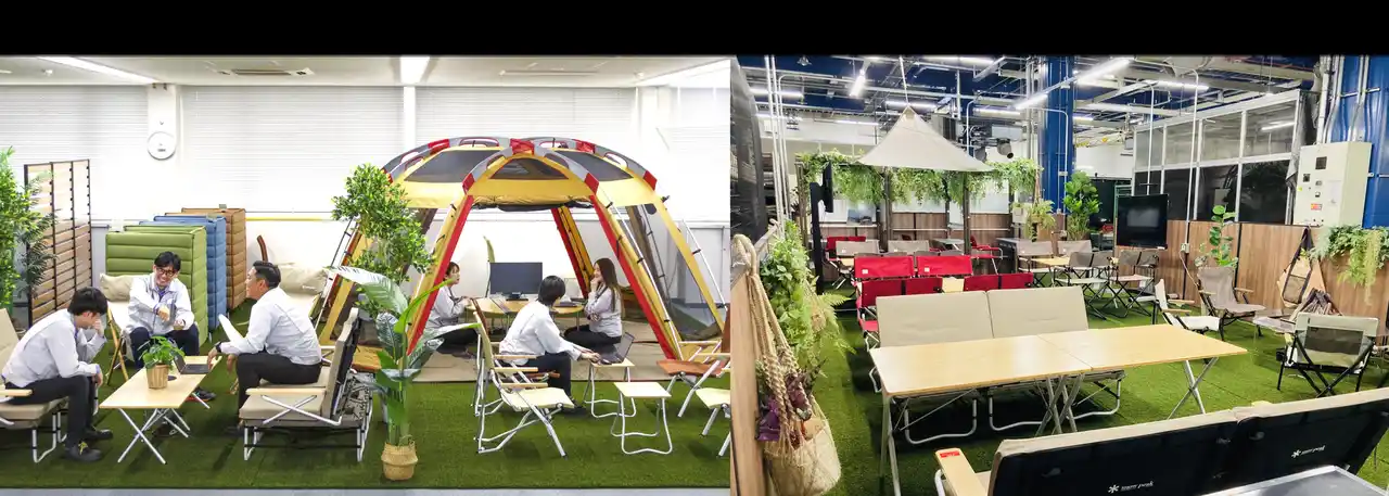 株式会社スノーピークビジネスソリューションズ(本社:愛知県岡崎市、代表取締役:坂田真也、以下スノーピークBS)は、面白法人カヤック(本社:神奈川県鎌倉市、代表取締役CEO:柳澤大輔、以下カヤック)と共同で、同社オフィス内にキャンプ用品を取り入れた「キャンピングオフィス」を2026年4月1日(水)より導入することをお知らせいたします。 |