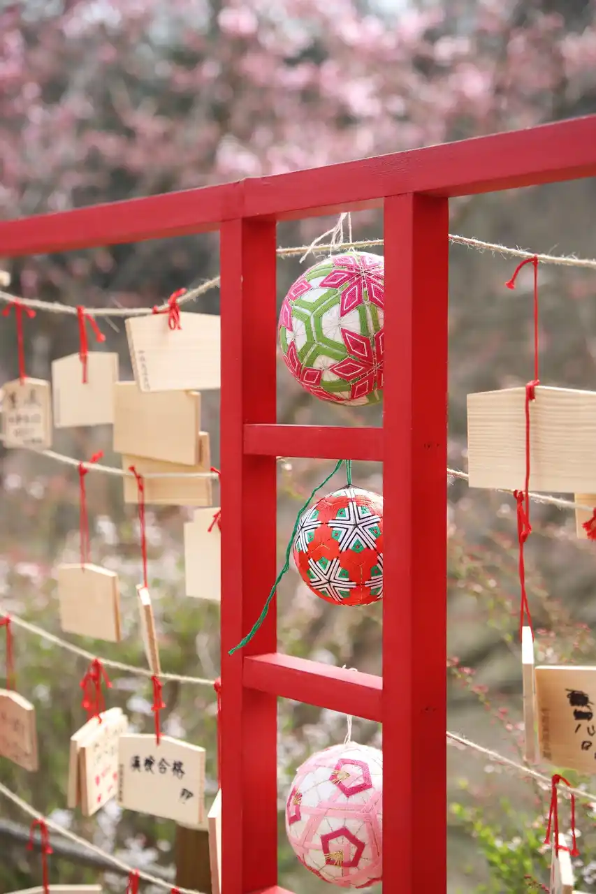 桜咲く谷で、絵馬に願いをお書きください。 |