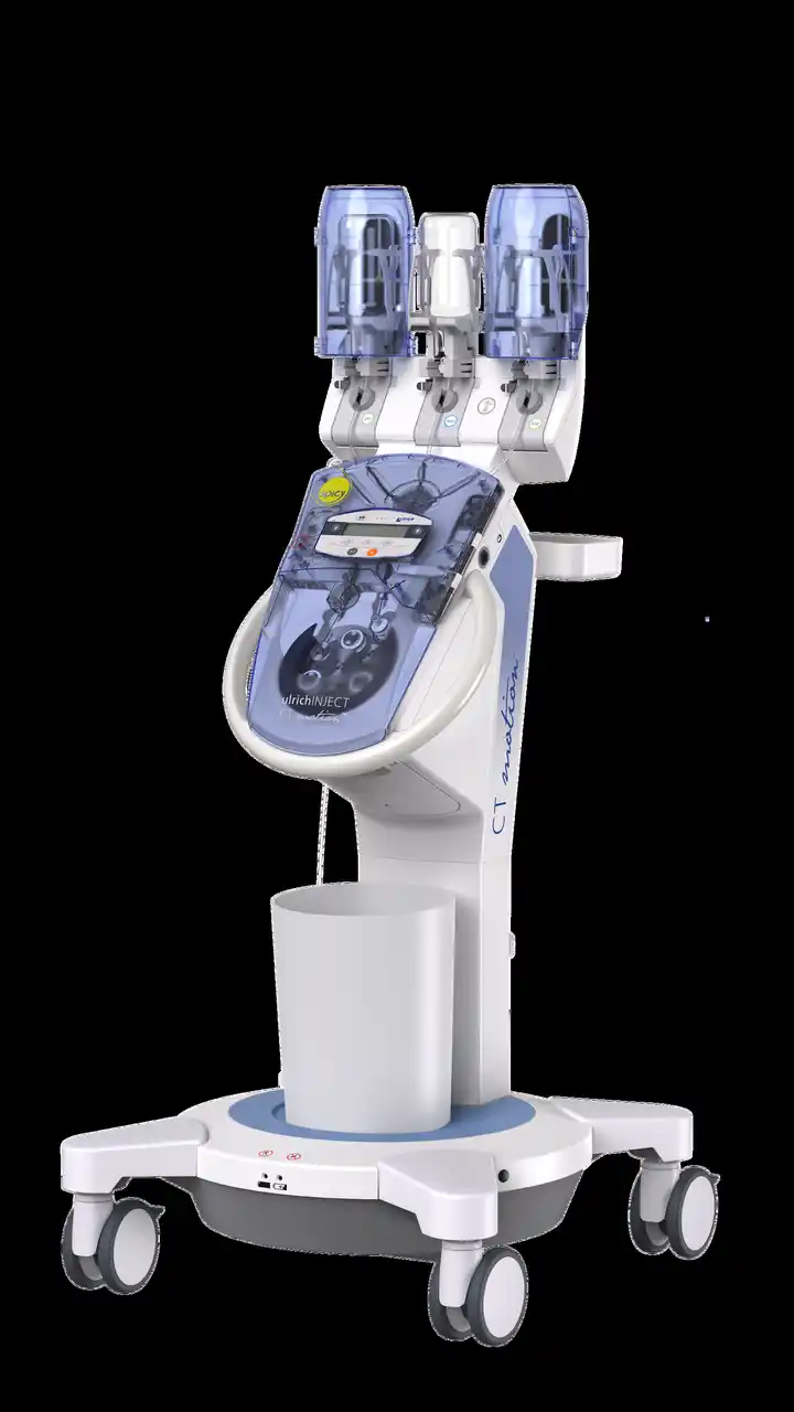 ウルリッヒ社の主力製品であるCT motion(TM) は自動シリンジレス技術を搭載し、CT造影検査の準備にかかる作業工程を削減し、効率的なワークフローを実現します。さらに、造影剤使用量を最適化することで、同剤の廃棄量を低減し環境負荷の軽減にも貢献します。 |