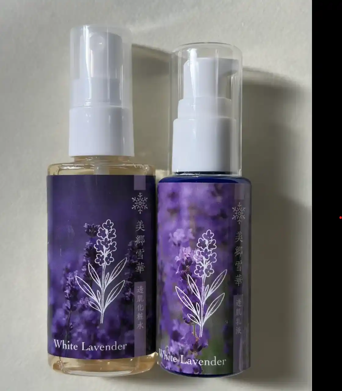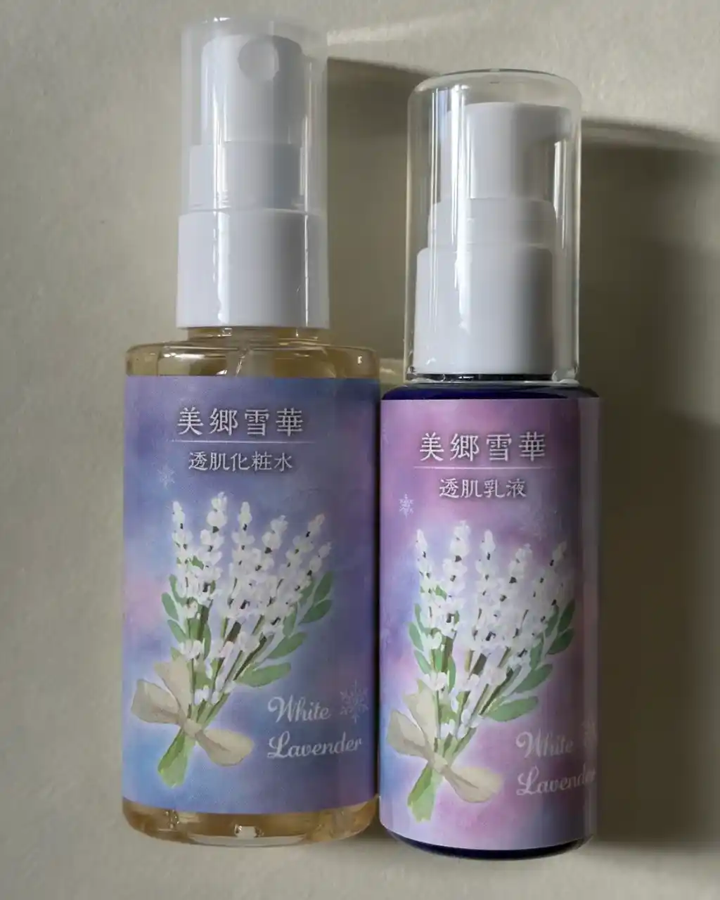 本スキンケアには、このホワイトラベンダーから抽出したホワイトラベンダー花エキスを配合。ほのかに甘くさわやかな香りが特徴です。 化粧品原料の開発メーカーの研究では、「美郷雪華」には紫外線による肌の炎症を抑える効果があるとされるポリフェノールが、一般的なラベンダーの約1.5倍含まれていることが確認されています。 |