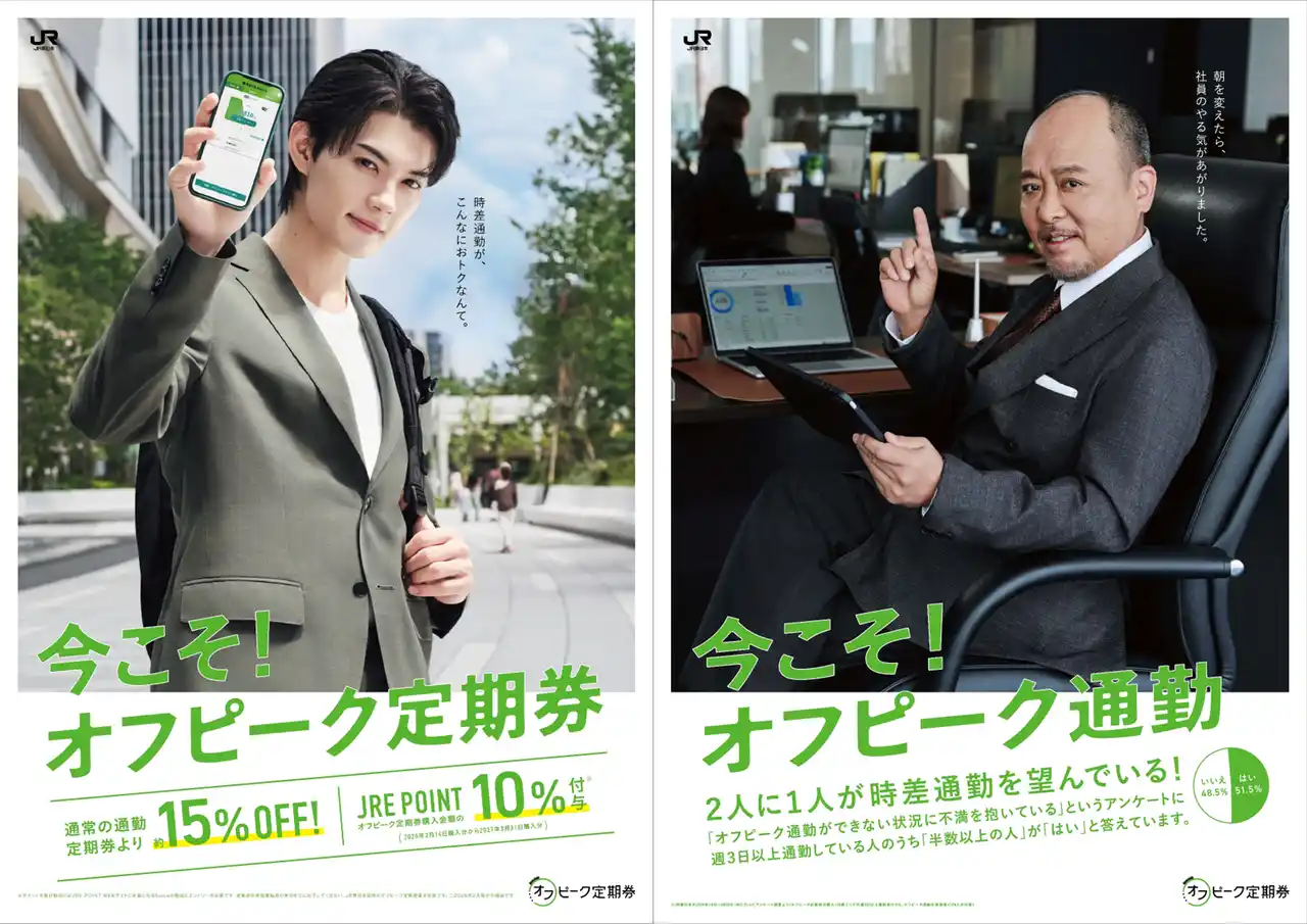 この度「オフピーク定期券」の更なる認知向上や各企業での時差出勤制度導入の後押しを目的としたプロモーションの一手として広告を放映いたします。 |