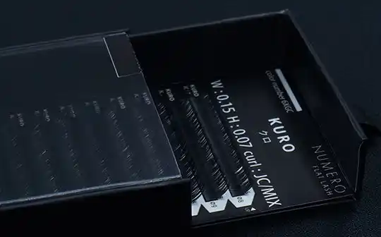 松風のNUMEROフラットラッシュ「マットブラック」は、光を反射しないマットな質感と自然な仕上がりで、多くのアイリストから支持されてきました。 |