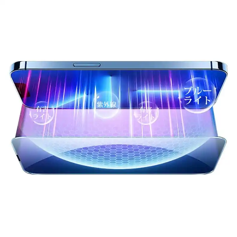 リアタイプは約 99%の高透過率を実現し、画面本来の鮮明さをそのままにクリアな視認性を楽しめます。ブルーライトカットタイプは有害なブルーライトを効果的に遮断し、長時間のスマホ使用による目の疲れを軽減してくれます。覗き見防止タイプは斜めからの画面覗き見を防ぎ、公共の場でもプライバシーをしっかり守り、安心して使用することができます。 |