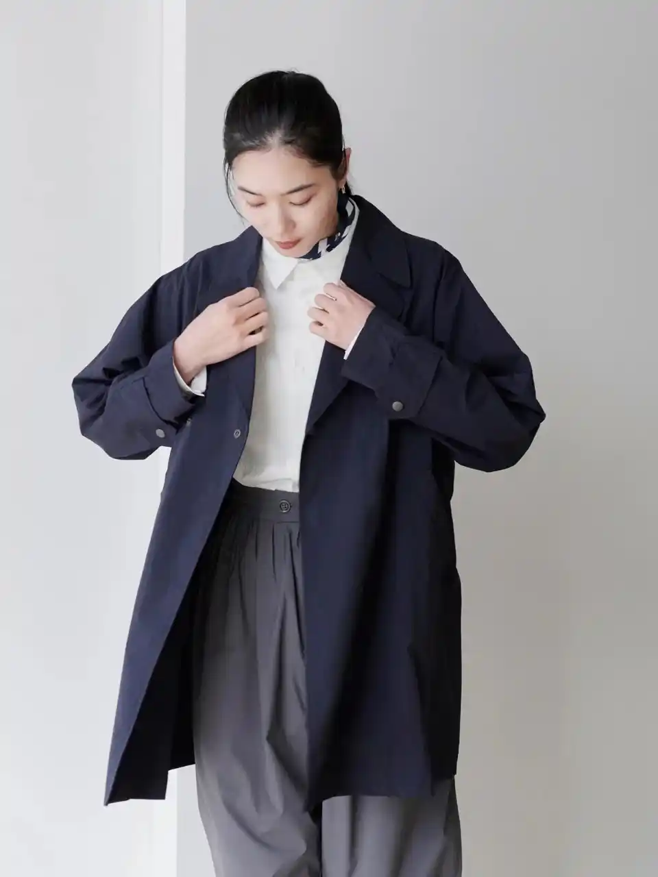 | トレンチコートのきちんと感はそのままに、日常に寄り添う扱いやすさを備えた“道具服”に仕上げました。 | |||||||||