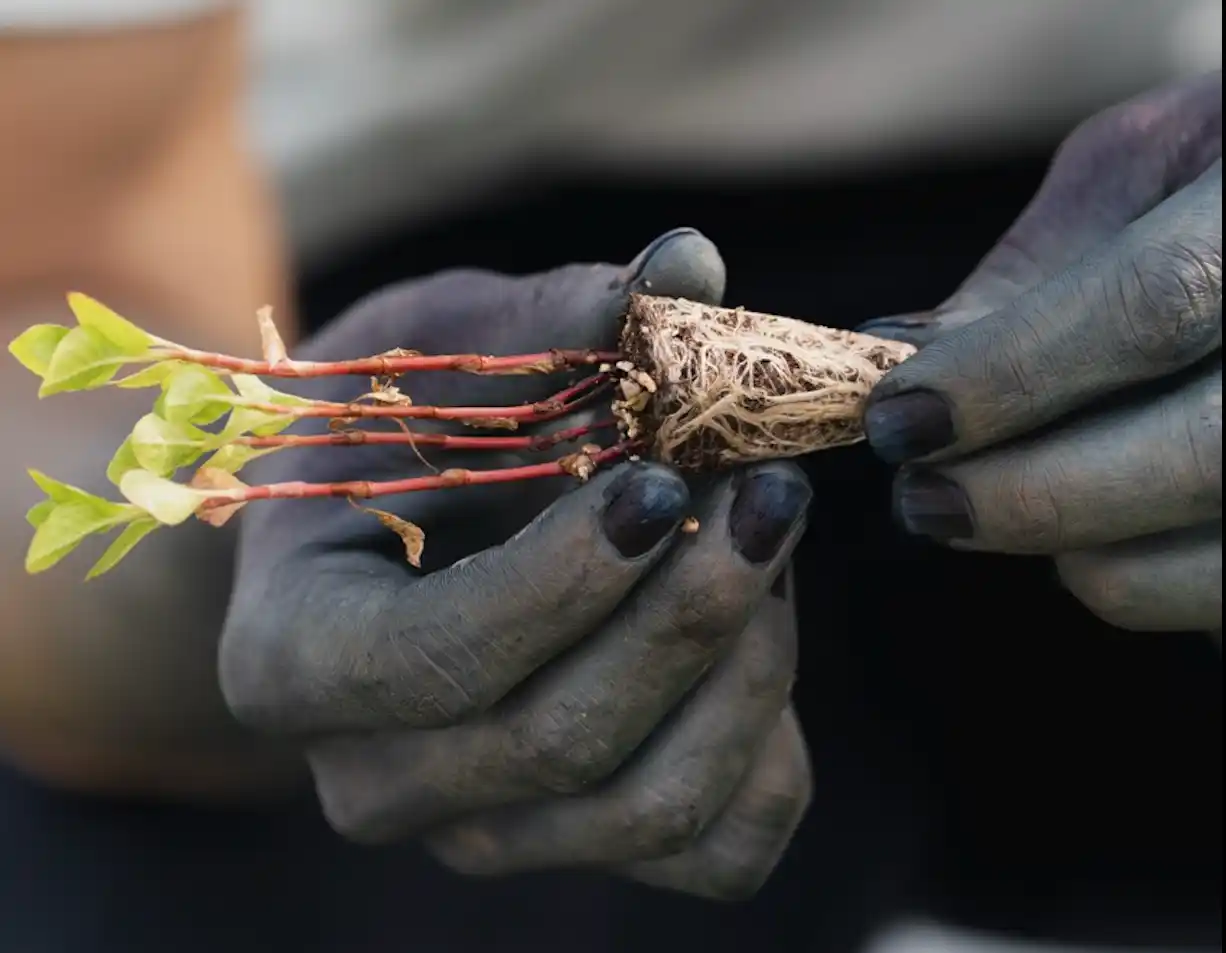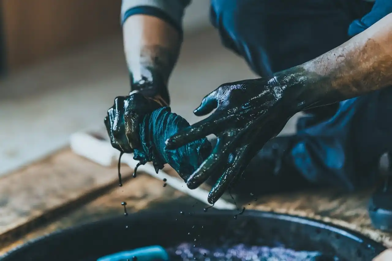 | 市場流通量0.01%の「天然藍」を守るため、自ら農家となり、江戸時代の伝統技法「天然灰汁発酵建て」を現代のリアルクローズへ。 |