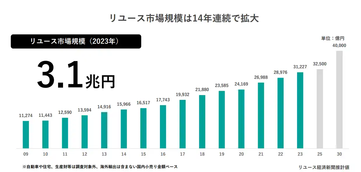 3兆円を突破した巨大市場。リユース市場は14年連続で右肩上がり