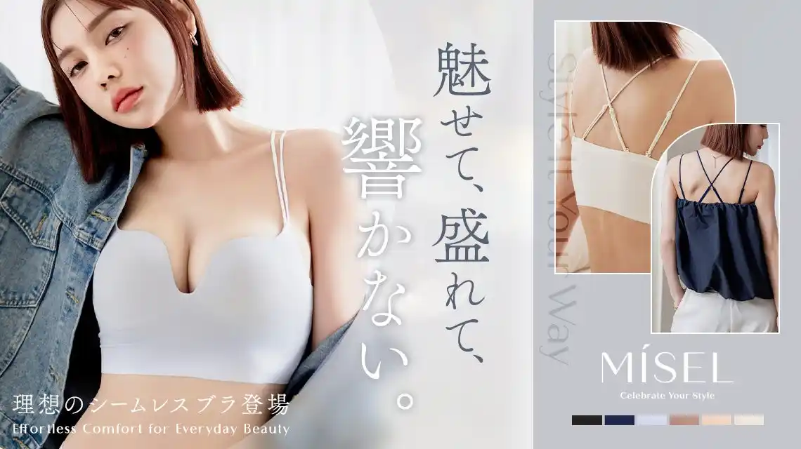 近年、インナー市場ではブラトップやシームレスブラなど、締め付けの少ない快適な着け心地を求めるニーズが拡大しています。特に春夏シーズンは、白Tシャツや薄手トップスを着る機会が増えることから、「下着のラインを響かせないこと」が重要視される傾向にあります。 一方で、従来のシームレスブラには「バストが盛れない」「谷間が作れない」「ホールド力が弱い」といった課題もあり、快適さとシルエットの美しさを両立するインナーは限られていました。 こうした背景を受け、インナーを“隠すもの”から“ファッションの一部”へと進化させるインナーファッションブランド『tu-hacci』は、快適さと補正力を両立した新作シームレスブラ「MiSEL」を開発しました。 |